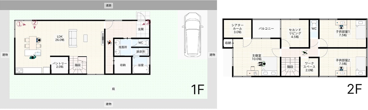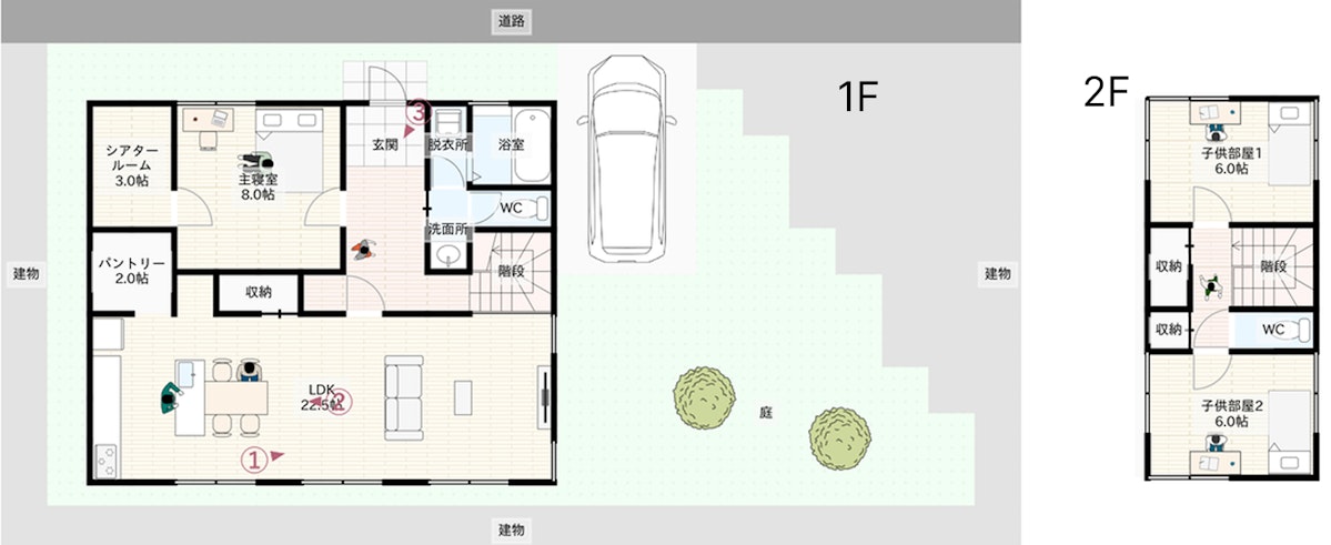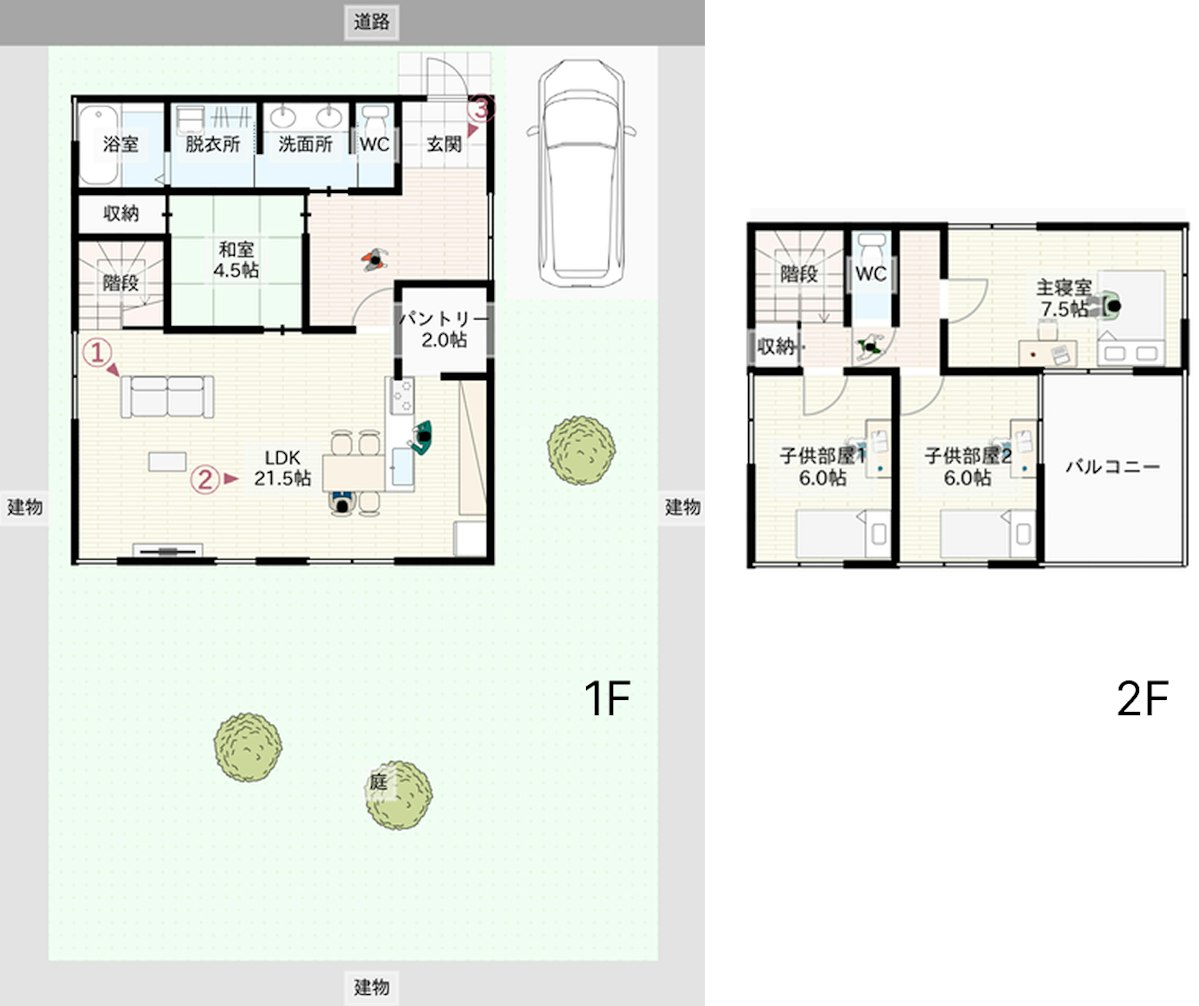 - 動線の設計(回遊・2WAY・行き止まりをなくすなど)